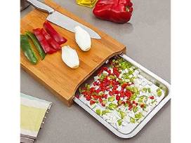 Parini Bamboo Cutting Board With Stainless Steel Tray