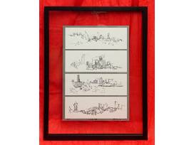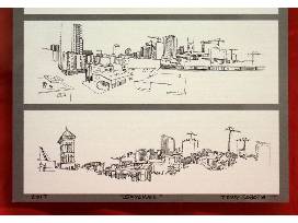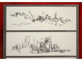 Skylines is a intricately detailed line-drawing artwork featuring the changing skylines of Nashville Tennessee in 2017. This is a "must have" limited edition print from award winning local artist Tony Sobota. Framed in see-through 17" x 21" floating frame.