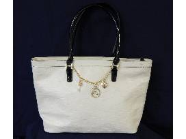You can never have enough tote bags. This classic Frank Lyman design white with black trim purse and gold toned chain accents has always been in style. Whether you take it shopping, traveling or out for the evening, it's always the perfect accessory.
