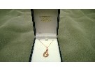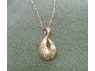 The latest... the hottest fashion... rose gold! This 14kt rose gold pendant has a contemporary teardrop design. The fine satin finish of the pendant contrasts with the flush set 33 round full-cut diamonds which are set in a scattered pattern. The pendant has an adjustable cable chain measuring 16/18" in length. Fair market value: $900