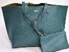 Teal leather tote with olive interior from Echo with teal clutch purse paired with sassy pink pineapple scarf.