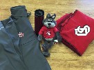 Cheer the Coyotes on with a super soft red USD blanket, grey size Large heavy-duty jacket, coffee mug, and stuffed mascot. Donated By: University of South Dakota