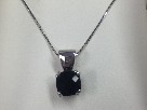 10mm x 10mm cushion-shaped black onyx pendant featuring a checkerboard cut and set in 14 karat white gold. The pendant is strung on a 14 karat white gold 20" long box chain. This piece is a beautiful accessory that can be worn to a formal event or casually with blue jeans. Donated By: Gunderson's Jewelers