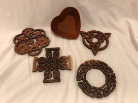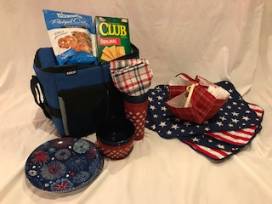 Enjoy the beautiful views of the Pikes Peak Region with your family with this patriotic picnic basket donated by the Swasey Family. Red, white & blue stars and fireworks decorate the following: 4 plates, 4 bowls, 4 cups, 4 cloth napkins and 4 cloth place mats. Also included is picnic snacks, a homemade clothe napkin and cutlery holder all packaged in a blue soft-sided cooler bag with pockets. Garrett's Uncle, Joe Russell has also donated beautifully handcrafted wooden items including: 1 wooden heart shaped bowl and 4 intricate wooden trivets. Finally, enjoy $100 worth of gift certificates for Smash Burger, a favorite for Rachel and Garrett on date night.
