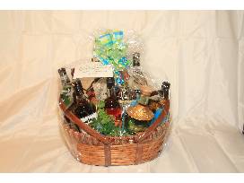 Beam Suntory Booze Basket: Midori, Courvoisier Cognac, Jim Beam Whiskey, Tres Generaciones Tequila, Suntory Whiskey Toki, Cruzan Rum, Maker's Mark, and Old Grand-Dad Rye Whiskey. Also included is a $25 gift certificate to Bottled Blonde for a pizza pie and a pint.
