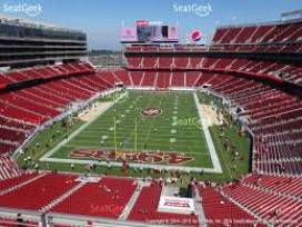 Cheer on the 49ers at Levi Stadium! Includes four field level seats to a 49ers home game during the 2018 regular season. Seats are located in the United Club section behind the 49ers' bench. The winning bidder will be given a choice of one of two home games once the schedule is released in April. Also includes VIP parking to whichever game is chosen.