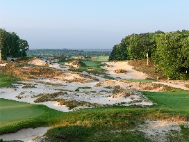 The challenge for architects Bill Coore and Ben Crenshaw at Friar's Head was to design some holes in breathtaking sand dunes perched 200 feet above Long Island Sound, and other holes on an ordinary potato field to the south. Said Crenshaw, "Our job was to marry the two distinct elements. We didn't want one nine up in the dunes and the other down on the flat." The solution was to move the routing back and forth and to artfully reshape the farm fields into gentle links-like land. They pulled it off so impressively that Friar's Head has moved steadily up the rankings, from No. 34 in its 2011 debut to No. 19 at present.