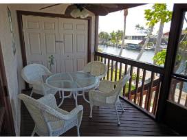 Outdoor seating and screened lanai, screened balcony off master bedroom