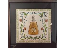 Set of two vintage perfume label watercolors in silver matte finish frames.