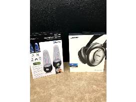 Fulfill all of your audio needs with this Goose Island branded tower speaker, Bose headphones, and Bluetooth dancing water speakers.