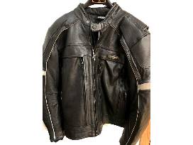 Men's leather Harley-Davidson FXRG riding jacket - size L. Includes special features to improve your comfort while riding and include venting, body armor at shoulders and elbows, warmth liner, kidney belt, 3M Schotchlite Reflective Materials, and waterproof properties featuring Cocona material.