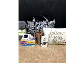 This package includes six books - The Rescue by Nicholas Sparks, The Notebook by Nicholas Sparks, The Help by Kathryn Stockett, Welcome to the Great Mysterious by Lorna Landvik, The Summer of Good Intentions by Wendy Francis, and The Good Luck Girls of Shipwreck Lane by Kelly Harms. You also get a Vera Bradley tote bag, a fleece blanket, a decorative pillow, and a Starbucks travel tumbler with some instant iced coffee. Also includes a Wellness Massage session at Massage Envy in Greenfield.