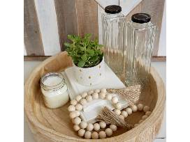 Farmhouse chalk painted side table styled by Gathered Boutique & Workshop