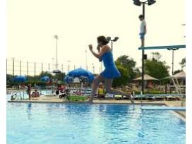 -50 meter x 25 meter "L-shaped" main pool featuring a handicapped entrance, two one-meter diving boards, and one three-meter diving board;