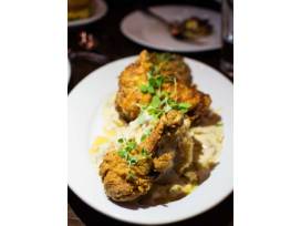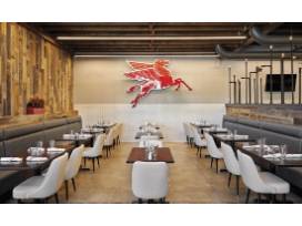 Situated in a charming renovated service station from which we take our name, the restaurant provides guests a modern and bold design aesthetic with concrete, tile and reclaimed wood. There are two fully functional garage doors and two banquettes with car bench seating, as well as open-air dining on a large, inviting patio with lounge seating and a game area for guests young and old.