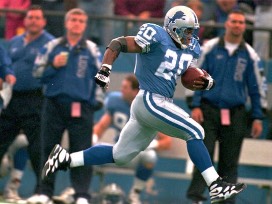 An NFL football signed by Hall of Fame running back Barry Sanders, arguably the greatest player never to play in a Super Bowl.