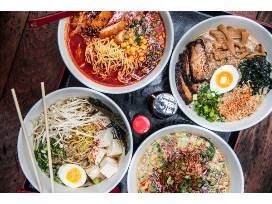 Located in Chicago's River North, Fulton Market and Streeterville, Ramen-san is a neighborhood noodle joint that slings hot broth, ice-cold beer and the best '90s hip-hop in town. With locations in River North, Fulton Market and Streeterville. Their Streeterville location, Ramen-san Deluxe, brings popular dishes from Ramen-san and combines it with maki rolls from Master Sushi Chef Kaze Chan from sister spot, Sushi-san. Ramen-san is open for lunch, dinner and late-night dining seven days a week. Drop by for a sake bomb and be sure to ask about their monthly omakase dinner series.