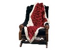 Antiqued red Simulated Shipping Trunk Table on a rubbed black, solid poplar wooden base. Hinged top opens to reveal storage compartment 31.75" x 32" x 10". Also includes Snowman in a Winter Forest Canvas Print, with the snowman holding a candle and battery-powered lighting the candle flame so it flickers like a real candle flame. This canvas measures 16 5/8" x 11" x 1". Also included is a beautiful 60" x 70" DITZ Design red/cream Plush Throw.