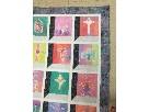 Hands Quilt. A BATIK is a cloth that is traditionally made using a manual wax-resist dyeing technique and discoveries have it dating back to Egypt in the 4th Century BC! Fast forward to First Grade and 33 little artists using washable glue and acrylic paint on white cotton fabric. Once they were dry they were washed by hand in a whirlpool bathtub just as Jesus would have used! And off to the quilter's the fabric went and a beautiful quilt was created with love, patience and 33 little artistic hands.