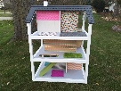 One of our SJOA Grandpas built this unique dollhouse and the Junior Kindergarten class worked together to paint, wallpaper, make kitchen cabinets & glue down flooring. Under the guidance of two designer moms, the kids added style and color to make any "homeowner" envious! With its open sides and casted bottom, it is easy to fit this 3-story dream house into a small space. The design has been started but there are plenty more ways to customize this house; If we had a year it still would not have been enough time to create all of the things we found on Pinterest! The ceiling height accommodates both playhouse size dolls as well as Barbies.