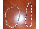 A gently used, spacious, vintage Marino Orlandi glazed Italian black leather tote bag pairs well with this metal-beaded necklace and pearl necklace.