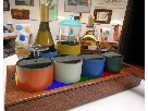 What was once a portable sewing machine has been rebuilt to hold 4 HFHSC glasses, 2 bottles of wine, snacks, napkins, and a corkscrew.