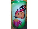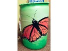 This beautifully painted rain barrel is an environmentally friendly way to collect rain water.Comes with gutter attachment & small rain garden.