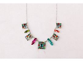 Gift one, get one! Nine intricate mosaic multicolor pieces make up this unique necklace that features sparkling stones in an antique silver-tone setting. Necklace 16" long. Get a second Lux Firefly pendant style necklace and earring set. Perfect Christmas gifts for your daughter, sister or your mother/mother-in-law!