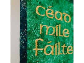 A truly priceless and exquisitly handcrafted bell pull and basket of Irish themed items including a Celtic Tree of Life Throw, blanket, shamrock scarf, embroidered dish towel, Celtic serving tray, Slainte coffee mugs, cordial glasses with pewter shamrock (set of 4), Irish pub coasters, Irish pub cookbook, shamrock magnet, CD Best of Irish Tenors, CD Irish Tenors Christmas, Irish soda bread mix, Shamrock pasta, Irish cream tea, green hot chocolate, Bailey's. And, a Royal Tara clover design bud vase and decorative dish. Fine bone china, hand painted, handmade in Galway, Ireland.