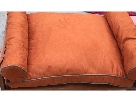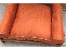 Super stylish pet furniture in soft orange/rust faux suede framed in wood. Small size is great for a small dog or 1-2 cats! Retails for $250.