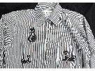 Amazing ladie's retro pinstripe cat shirt with rhinestones by Fabrizio size M - 65% poly 35% cotton