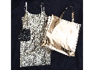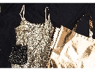 Get your Cookie on this holiday season in a size small gold sequin Red Clover mini dress, a gold "Empire" bag and beaded vintage velvet bag.