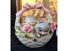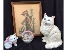 These couldn't be any cuter. Darling porcelain easter basket box, small ceramic cat, large ceramic cat and adorable framed print.