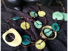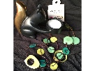 Precious wood and brass squirrel votive holder and wonderful bright colored necklace hand-crafted in Colombia.