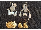 Get your kitty on with this adorable vintage silver-plate earring holder, pair of sterling silver momma cat with kittens dangle earrings and two pairs of vintage gold-plated earrings. All are super special and adorable!