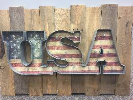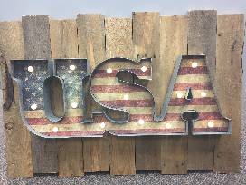 Show your patriotism with this U.S.A. sign. Measures approximately 30x20, U.S.A. letters light up when switched on.
