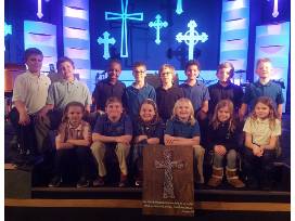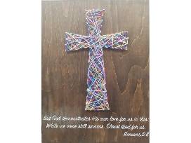 Created by the 3rd Grade class, this cross of yarn will be wanted by all 3rd Grade parents. Students were given their own color of yarn, which has been woven into a cross. Each students' name and color of yarn is written on the side of the plaque.