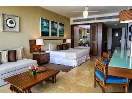 Experience Mexico! This package includes a week's stay in a luxurious, 1 bedroom condo at a Vidanta Resort destination of your choice. This one bedroom suite includes a king-size bed, and living room complete with a dining table and kitchen. Has a balcony with private plunge pool, as well as two LCD televisions. Accommodates up to 4 adults, 2 children.