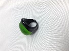 LOT SUMMARY: Sculpted green and black glass ring by Murano Artist Amy West, Size 8.
