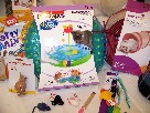 Share your favorite feline how much you care with a new bed, a cozy blanket, a cat scratcher, a toy wand, mice toys, a cheese chase, a collapsible tunnel toy, and plenty of treats to go around!