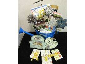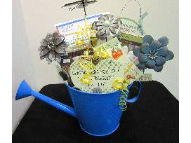 This watering can gift basket includes assorted seeds, bird feeder, garden stakes, wooden signs, garden lights, bulbs, and a $10 gift certificate to Allen Landscape in Highland (offer expires 3/20/22)