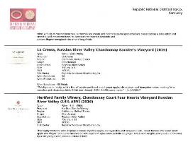 Twelve bottles of premium wine: Allegrini (Amarone della Valpolicella Classico), Acranum (Toscana Valadorna Rosso), Champagne Drappier (Champagne Brut Rose), Claredon Hills (McLaren Vale Syrah Piggott Range), Gran Moraine (Pinot Noir), Lucienne (Pinot Noir), Resonance (Willamette Valley Pinot Noir), Chateau Mongravey (Margaux Cru Bourgeois), La Jota (Cabernet Sauvignon), Pahlmeyer Vineyards (North Coast Chardonnay), La Crema (Chardoonay) and Hartfort Family Winery (Chardonnay).