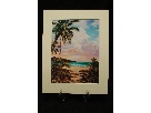 This original work of art created by Artist George K. Salhofer depicts a swaying palm tree on the beach. 14 x 20