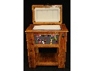 Your backyard will be the talk of the town with this beautiful cedar chest! The cedar chest has a 48 Qt. cooler inside, a bottle opener attached to the frame, a spigot valve, a magnetic chalkboard with bottle cap magnets decorated by Mrs. Vigneault's third graders, a shelf on the bottom, and casters to move it easily around the deck.