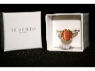 Rhodium plated and Sterling Silver and Yellow Gold plated ladies fashion ring, set with an orange stone. The ring is a size 6
