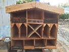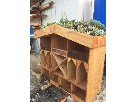Decorative garden tool storage made of finished wood with a succulent garden planted by our fourth graders. 39.5 inches wide by 36 inches tall. Weighs over 50 pounds. Can be used in a garage, backyard, or porch to store all your gardening items such as watering cans, various tools, seeds. Includes shelves for decorative items such as word stones or figurines (everything pictued is included). Homemade by a parent . Also included is an Organic Mushroom Mini Farm.