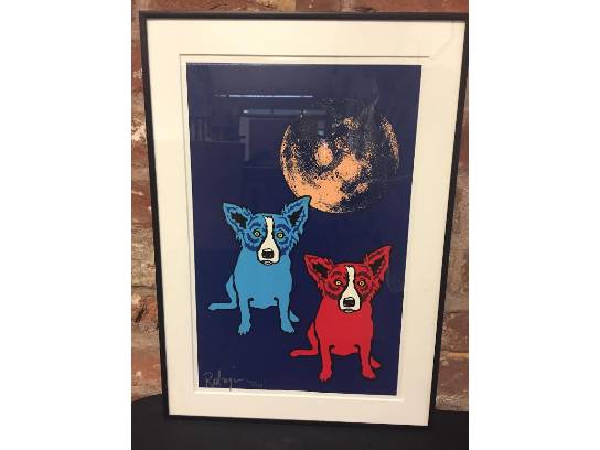 George Rodrigue's "Cosmos Moon" signed and framed silkscreen print 110/175. (1992) Dimensions: 15x10" *This is a rare print and is no longer being sold.