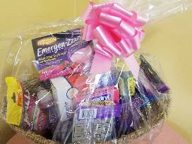 Sunbeam Humidifier and pharmacy gift basket with assorted get well items