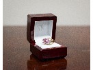 Crafted in 14-karat white and yellow gold, this ring contains a stunning pink, rectangular, "cushion" cut kunzanite spodumene surrounded by twenty white, round, "brilliant" cut diamonds for a total weight of 8.66 cts. Courtesy of AAA Jewelers.