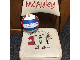 Bid for your chance to own one of the Mighty Mac padded chairs that were previously a part of the athletic teams' "bench" plus an autographed volleyball from the MMc State Champ team from 2016.